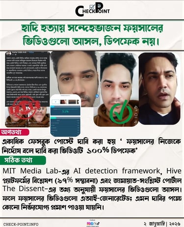 সুতরাং, হাদি হত্যায় সন্দেহভাজন ফয়সালের ভিডিওগুলো আসল, ডিপফেক নয়।