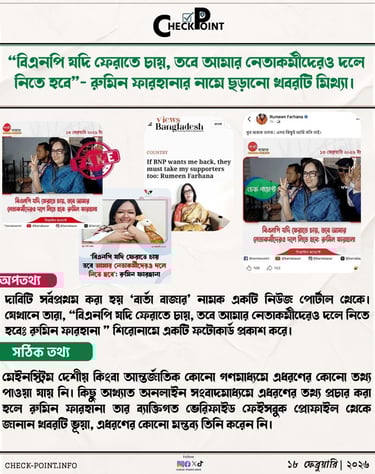 “বিএনপি যদি ফেরাতে চায়, তবে আমার নেতাকর্মীদেরও দলে নিতে হবে”- রুমিন ফারহানার নামে ছড়ানো খবরটি মিথ্যা।