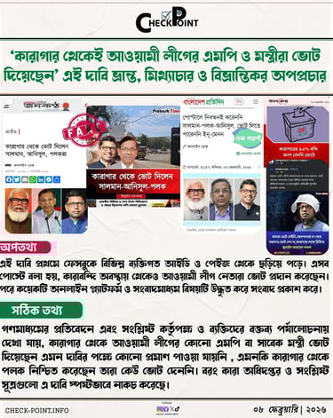 অতএব, ‘কারাগার থেকেই আওয়ামী লীগের এমপি ও মন্ত্রীরা ভোট দিয়েছেন’—এই দাবি ভ্রান্ত, মিথ্যা ও বিভ্রান্তিকর।