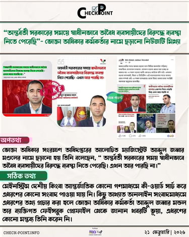 “অন্তর্বর্তী সরকারের সময়ে স্বাধীনভাবে অবৈধ ব্যবসায়ীদের বিরুদ্ধে ব্যবস্থা নিতে পেরেছি”- ভোক্তা অধিকার কর্মকর্তার নামে ছড়ানো নিউজটি মিথ্যা